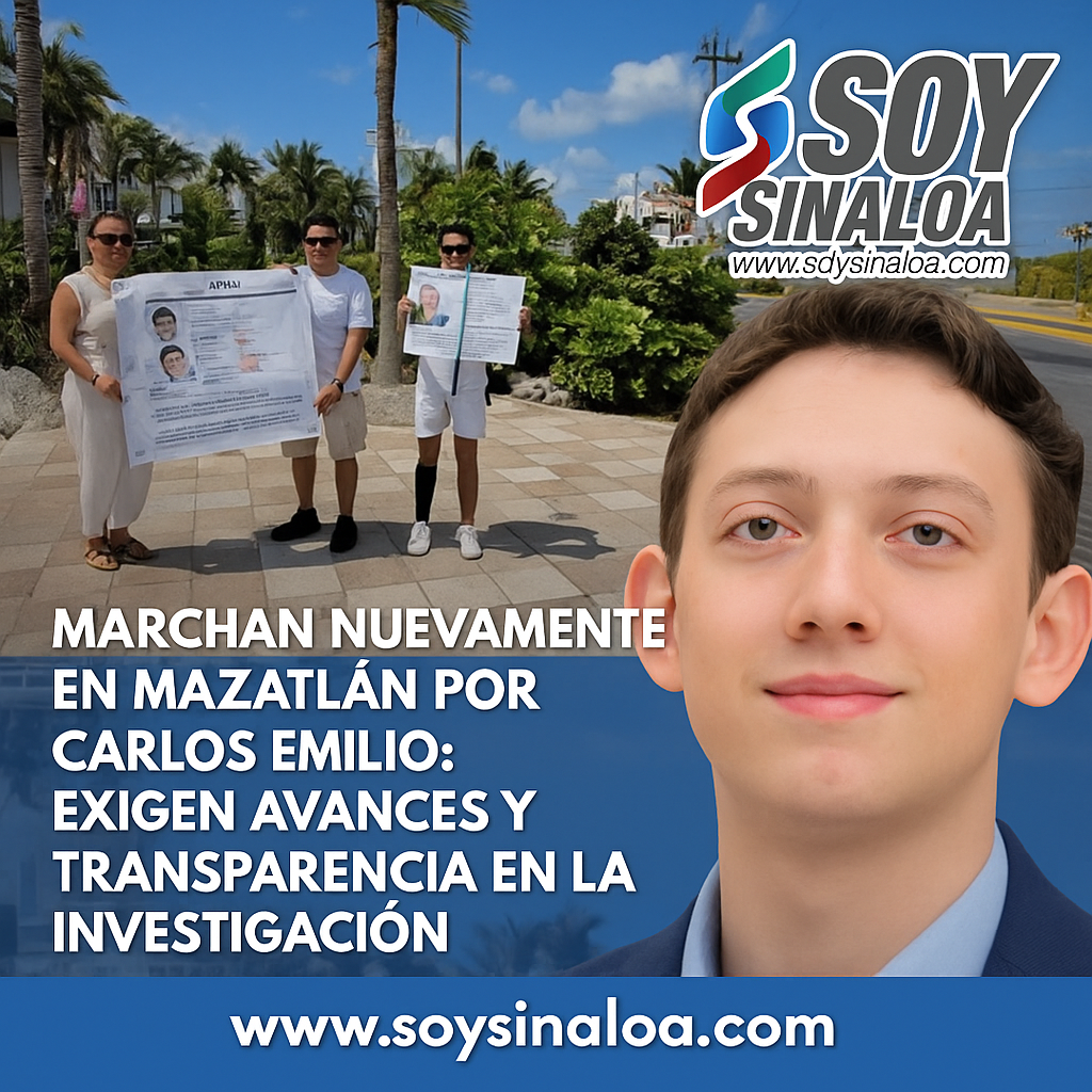Familiares y ciudadanos marcharon este sábado en Mazatlán para exigir la localización con vida de Carlos Emilio Galván Valenzuela, joven…